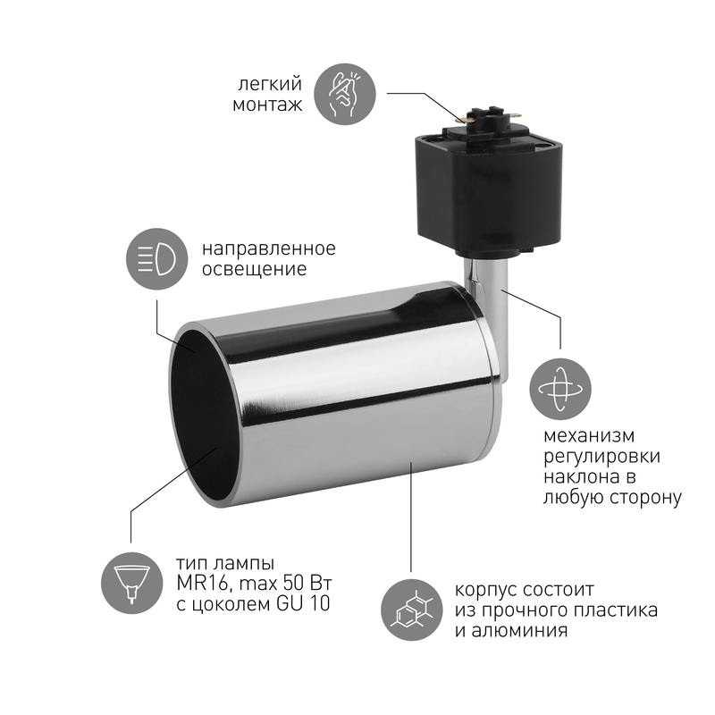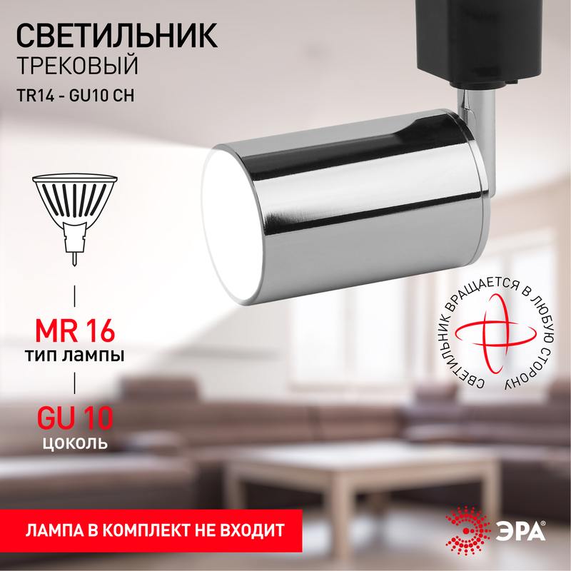Характеристики Трековый светильник однофазный ЭРА TR14-GU10 CH под лампу MR16 хром: