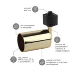 Характеристики Трековый светильник однофазный ЭРА TR14-GU10 GD под лампу MR16 золото: