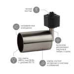 Характеристики Трековый светильник однофазный ЭРА TR14-GU10 SN под лампу MR16 сатин-никель: