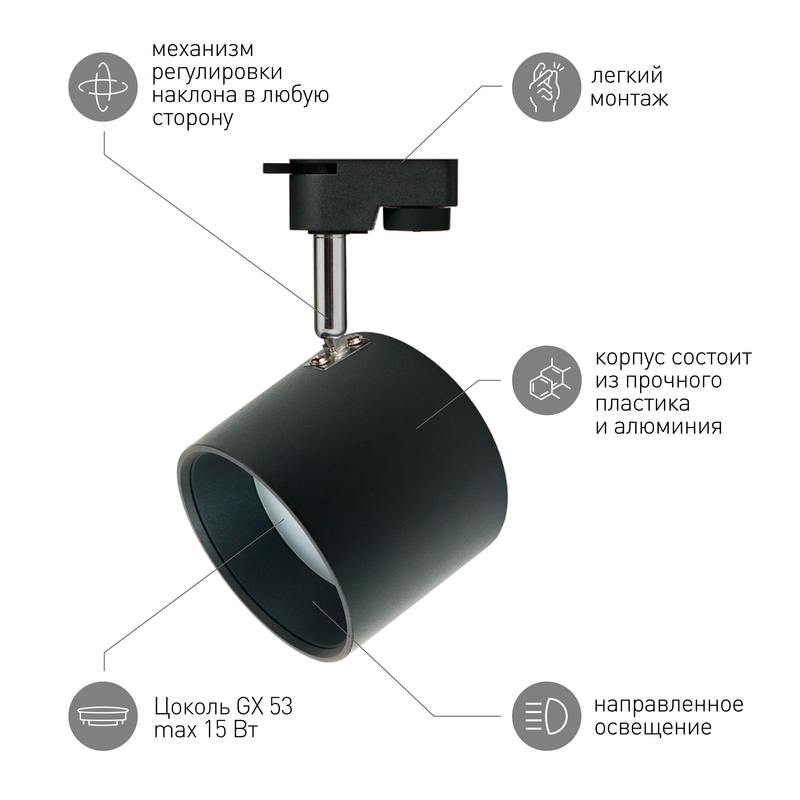 Характеристики Трековый светильник однофазный ЭРА TR15 GX53 BK/SL под лампу черный/серебро: