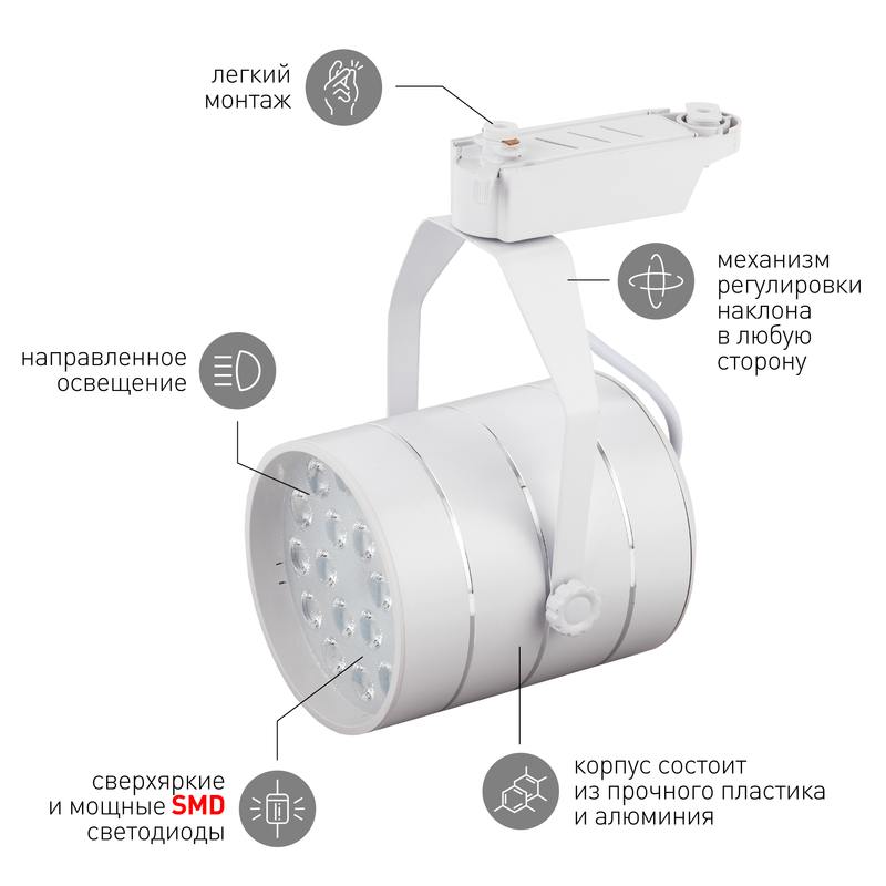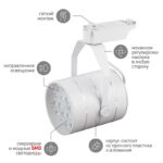 Характеристики Трековый светильник однофазный ЭРА TR3 — 18 WH светодиодный SMD 18Вт 4000К 1260Лм белый: