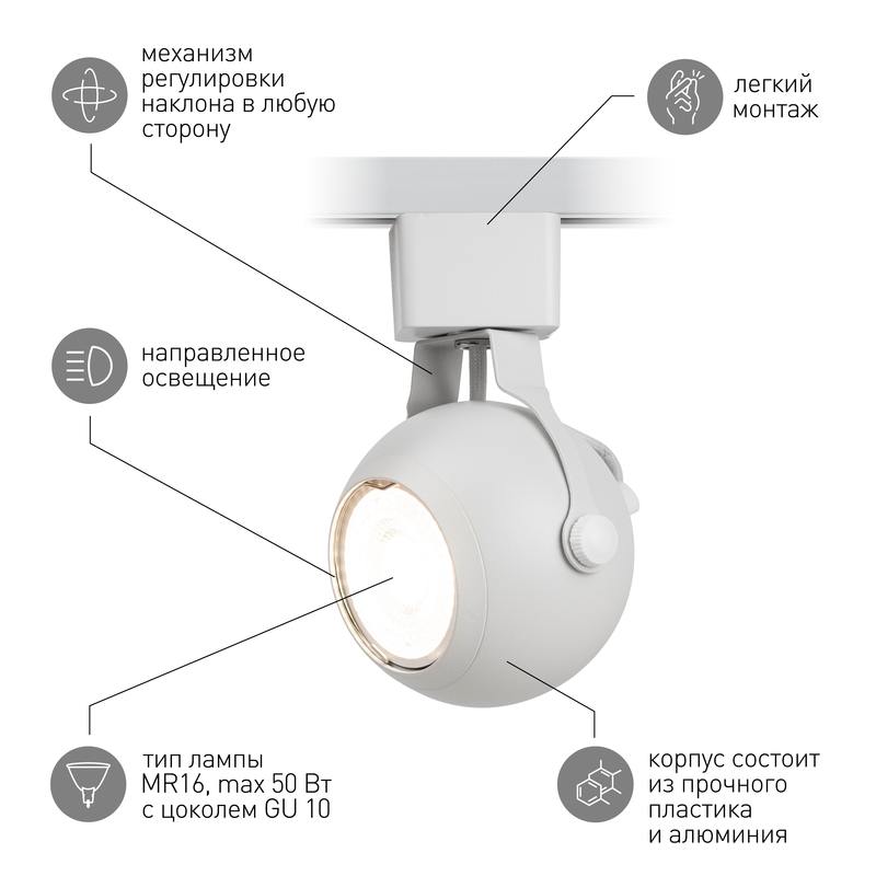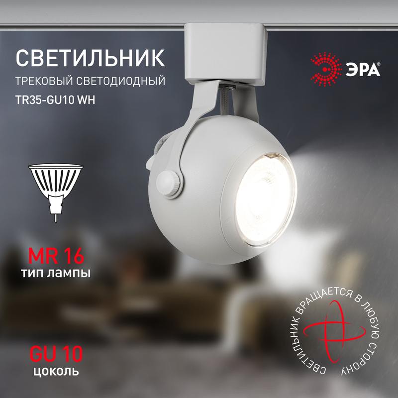 Характеристики Трековый светильник однофазный ЭРА TR35-GU10 WH под лампу MR16 белый: