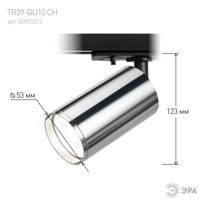 Характеристики Трековый светильник однофазный ЭРА TR39-GU10 СН под лампу MR16 хром: