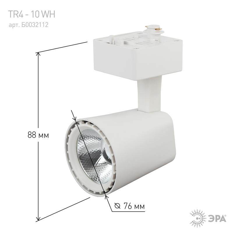 Характеристики Трековый светильник однофазный ЭРА TR4 — 10 WH светодиодный COB 10Вт 4000К 700Лм белый: