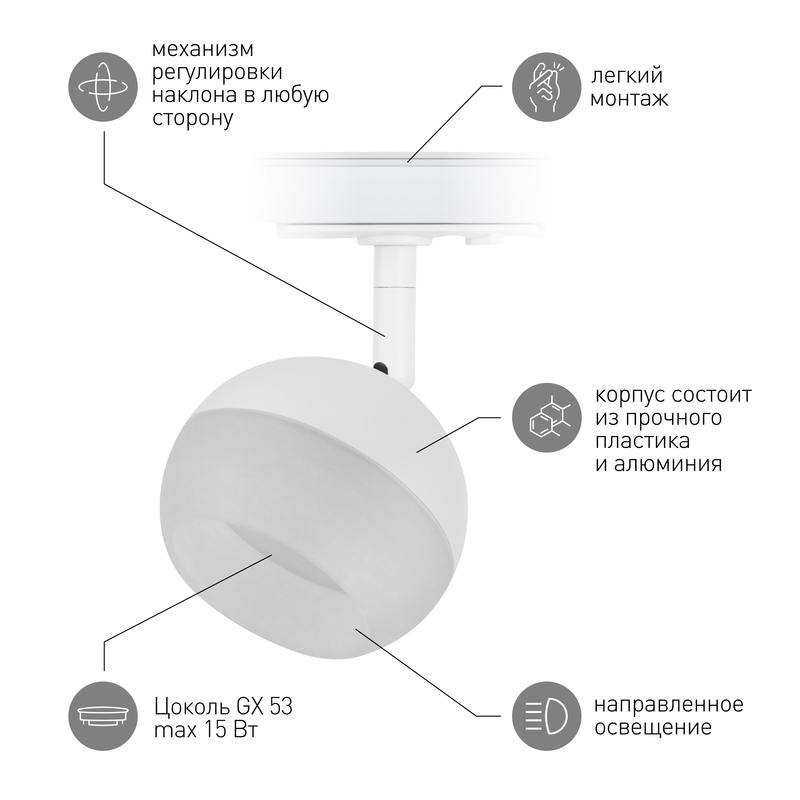 | Цоколь для источника света | под лампу GX53, лампа в комплект не входит |