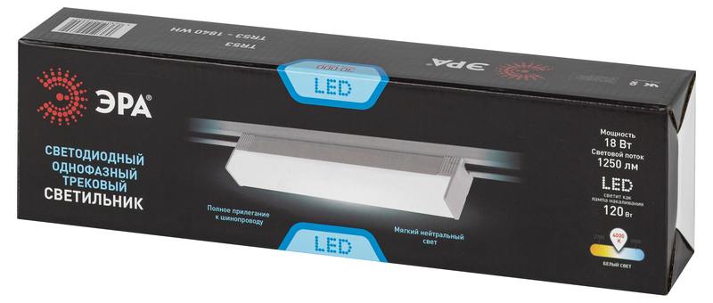 Характеристики Трековый светильник однофазный ЭРА TR53 — 1840 WH 18W 4000K 30см Белый: