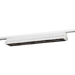 Однофазный светодиодный трековый светильник с направленным светом. В качестве источника света выступают 2 независимых поворотных модуля со встроенными рефлекторами. За счет раздельных рефлекторных модулей, разнесенных по всей длине светильника, он создает широкую полосу плотной засветки, в отличии от классических моделей, создающих цилиндрическое световое пятно. Модель великолепно подойдет для коммерческого освещения. Светильник поставляется в двух цветах: черный и белый, и двух цветовых температурах: 3000К – теплый белый и 4000К – нейтральный белый. (Б0059551-TR54 — 5030 WH, Б0059552-TR54 — 5040 WH, Б0059553-TR54 — 5030 BK, Б0059547-TR54 — 5040 BK)