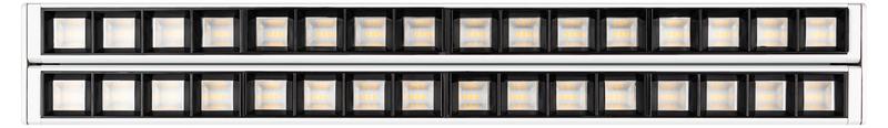 Однофазный светодиодный трековый светильник с направленным светом. В качестве источника света выступают 2 независимых поворотных модуля со встроенными рефлекторами. За счет раздельных рефлекторных модулей, разнесенных по всей длине светильника, он создает широкую полосу плотной засветки, в отличии от классических моделей, создающих цилиндрическое световое пятно. Модель великолепно подойдет для коммерческого освещения. Светильник поставляется в двух цветах: черный и белый, и двух цветовых температурах: 3000К – теплый белый и 4000К – нейтральный белый. (Б0059551-TR54 — 5030 WH, Б0059552-TR54 — 5040 WH, Б0059553-TR54 — 5030 BK, Б0059547-TR54 — 5040 BK)