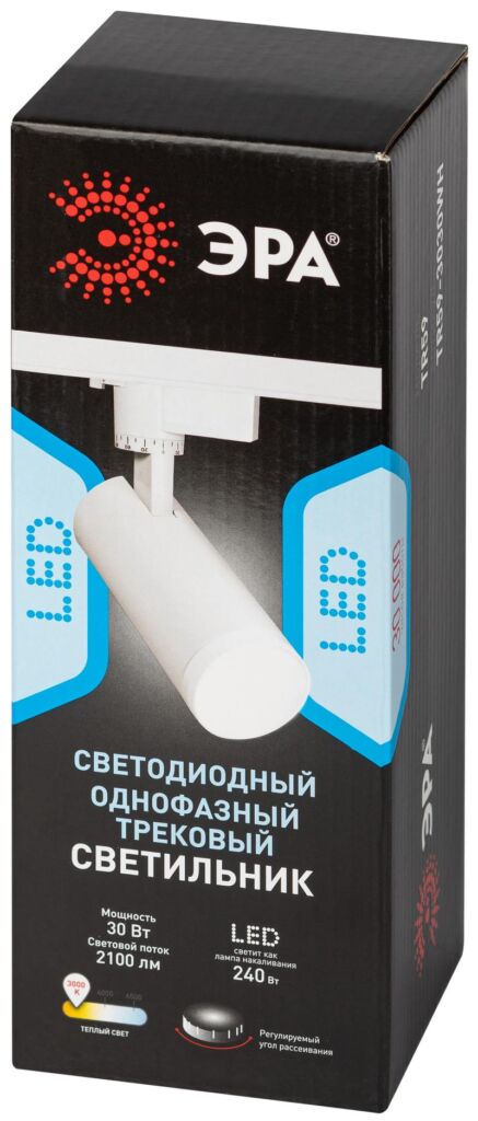 Характеристики Трековый светильник однофазный ЭРА TR59 — 3030 WH светодиодный 30Вт 3000К белый: