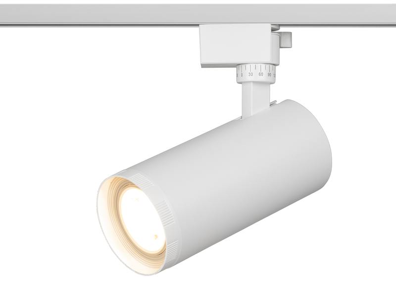 Однофазный светодиодный трековый светильник. Корпус выполнен из алюминия, рассеиватель — матовый акрил. Благодаря широкому углу рассеивания подойдет для создания основного освещения. Главная особенность модели — это ее форма, а ширина модели полностью соотвествует ширине трекового шинопровода, благодаря чему светильники визуально сливаются с шинопроводом в единую конструкцию.