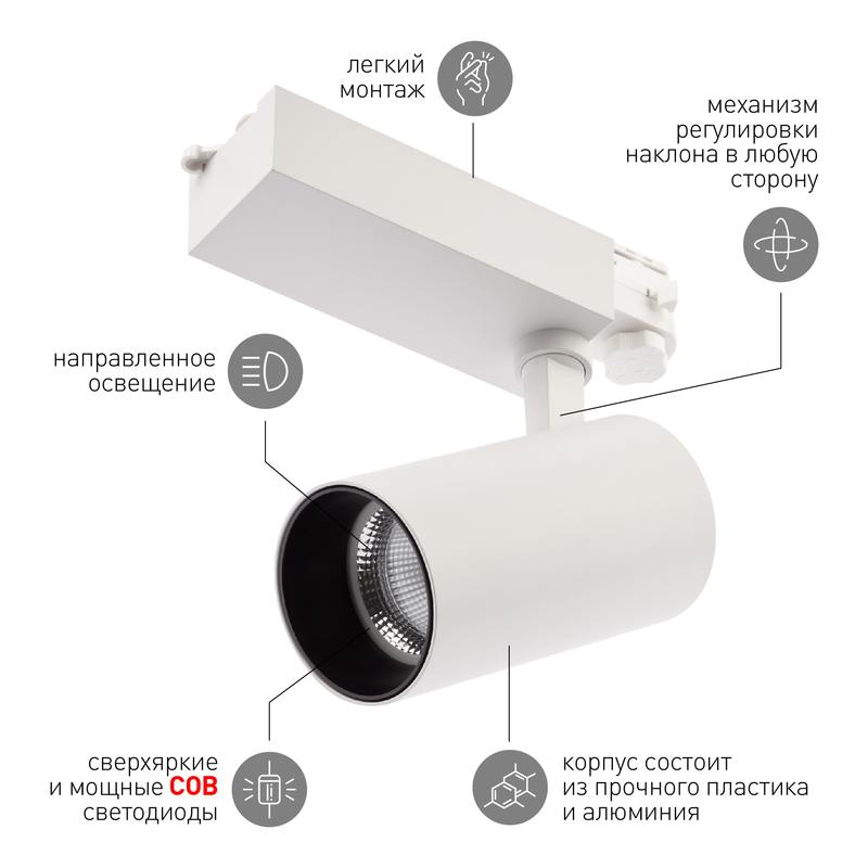 Характеристики Трековый светильник трехфазный ЭРА SТR-30-36-40K-W30 узкий луч 4000K белый: