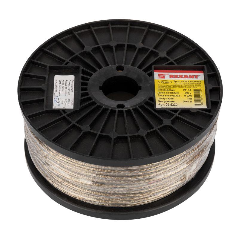 Характеристики Трос стальной в ПВХ изоляции d3.0мм (200м) REXANT 09-5330: