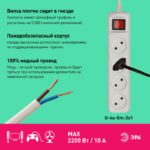 Характеристики Удлинитель электрический ЭРА U-4s-5m-2×1 без заземления c выключателем 4 розетки 5 м ПВС 2×1мм2 10А: