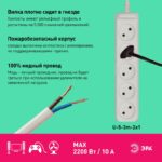 Характеристики Удлинитель электрический ЭРА U-5-3m-2×1 без заземления 5 розеток 3м ПВС 2×1мм2 10А: