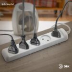 Удлинитель электрический Эра U-5-3m без заземления, ПВС, 2×1мм2, 5 розеток, 3м. Рассчитан на максимальную мощность 10А/2200 Вт. Удлинитель Эра станет Вашим надежным помощником, если Ваши любимые электроприборы находятся далеко от розеток. Провод в удлинителях Эра сделан из 100% меди, что делает его абсолютно пожаробезопасным. Корпус выполнен из ударопрочного и негорючего пластика (полипропилен). В моделях с заземлением у вилки есть кольцо для удобного извлечения из розетки. Модель удлинителя на 10А позволяет подключить мощные бытовые приборы общей нагрузкой до 2200Вт. Не бойтесь включить чайник, обогреватель, микроволновку или другие электроприборы. Толстый провод удлинителя Эра гарантирует полную безопасность. Дизайн удлинителя разработан в России командой Эра Style.