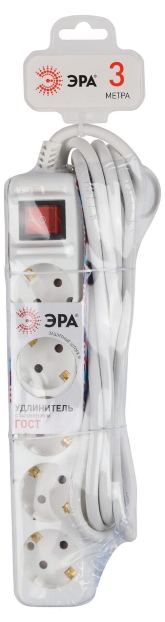 Удлинитель электрический Эра U-5es-3m-3×1,5 с заземлением, с выключателем, 5 розеток, 3м ПВС 3×1,5мм2. Для мощных приборов. Рассчитан на максимальную мощность 16А/3500. Удлинитель Эра станет Вашим надежным помощником, если Ваши любимые электроприборы находятся далеко от розеток.