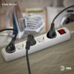 Удлинитель электрический Эра U-5es-5m-3×1 с заземлением, с выключателем, ПВС, 3×1мм2, 5 розетки, 5 м. Рассчитан на максимальную мощность 16А/3500 Вт. Удлинитель Эра станет Вашим надежным помощником, если Ваши любимые электроприборы находятся далеко от розеток. Провод в удлинителях Эра сделан из 100% меди, что делает его абсолютно пожаробезопасным. Корпус выполнен из ударопрочного и негорючего пластика (полипропилен). В моделях с заземлением у вилки есть кольцо для удобного извлечения из розетки. Модель удлинителя на 16А позволяет подключить мощные бытовые приборы общей нагрузкой до 3500Вт. Не бойтесь включить чайник, обогреватель, микроволновку или другие электроприборы. Толстый провод удлинителя Эра гарантирует полную безопасность. Дизайн удлинителя разработан в России командой Эра Style.