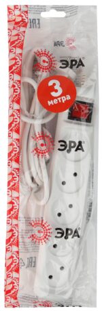 Удлинитель электрический Эра U-5s-3m-2×1 без заземления, c выключателем, 5 розеток, 3м ПВС 2×1мм2. Рассчитан на максимальную мощность 10А/2200. Удлинитель Эра станет Вашим надежным помощником, если Ваши любимые электроприборы находятся далеко от розеток. Провод в удлинителях Эра сделан из 100% меди, что делает его абсолютно пожаробезопасным. Корпус выполнен из ударопрочного и негорючего пластика (полипропилен). Модель удлинителя на 10А позволяет подключить бытовые приборы общей нагрузкой до 2200Вт. Дизайн удлинителя разработан в России командой Эра Style.