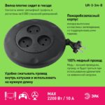 Характеристики Удлинитель электрический ЭРА UR-3-3m-B рулетка без заземления 3 розетки 3м 2×1мм2 10А черная: