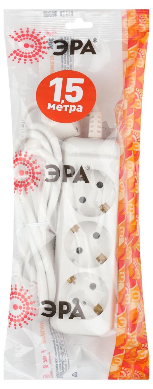 Характеристики Удлинитель электрический ЭРА UX-3e-1,5m с заземлением 3 розетки 1,5 м ПВС 3×0,75мм2 10А: