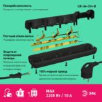 Характеристики Удлинитель электрический ЭРА UX-3e-3m-B с заземлением 3 розетки 3м ПВС 3×0,75мм2 10А черный: