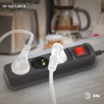 Характеристики Удлинитель электрический ЭРА UX-3es-1,5m-B с заземлением с выключателем 3 розетки 1,5 м ПВС 3×0,75мм2 черный: