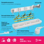 Удлинитель электрический Эра UX-4e-5m с заземлением, ПВС, 3×0,75мм2, 4 розетки, 5 м. Рассчитан на максимальную мощность 10А/2200 Вт. Удлинитель Эра станет Вашим надежным помощником, если Ваши любимые электроприборы находятся далеко от розеток. Провод в удлинителях Эра сделан из 100% меди, что делает его абсолютно пожаробезопасным. Корпус выполнен из ударопрочного и негорючего пластика (полипропилен). Вилка обеспечена кольцом для удобного извлечения ее из розетки. Модель удлинителя на 10А позволяет подключить бытовые приборы общей нагрузкой до 2200Вт. Дизайн удлинителя разработан в России командой Эра Style.