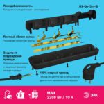 Характеристики Удлинитель электрический ЭРА UX-5e-3m-B с заземлением 5 розеток 3 м ПВС 3х0,75мм2 10А черный: