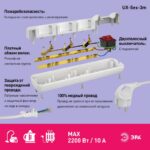 Характеристики Удлинитель электрический ЭРА UX-5es-3m с заземлением с выключателем 5 розеток 3 м ПВС 3×0,75мм2 10А: