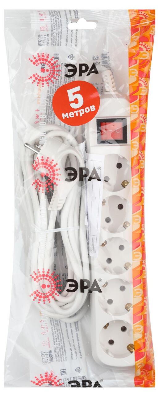 Удлинитель электрический Эра UX-5es-5m с заземлением, с выключателем, ПВС, 3×0,75мм2, 5 розетки, 5 м. Рассчитан на максимальную мощность 10А/2200 Вт. Удлинитель Эра станет Вашим надежным помощником, если Ваши любимые электроприборы находятся далеко от розеток. Провод в удлинителях Эра сделан из 100% меди, что делает его абсолютно пожаробезопасным. Корпус выполнен из ударопрочного и негорючего пластика (полипропилен). Вилка обеспечена кольцом для удобного извлечения ее из розетки. Модель удлинителя на 10А позволяет подключить бытовые приборы общей нагрузкой до 2200Вт. Дизайн удлинителя разработан в России командой Эра Style.