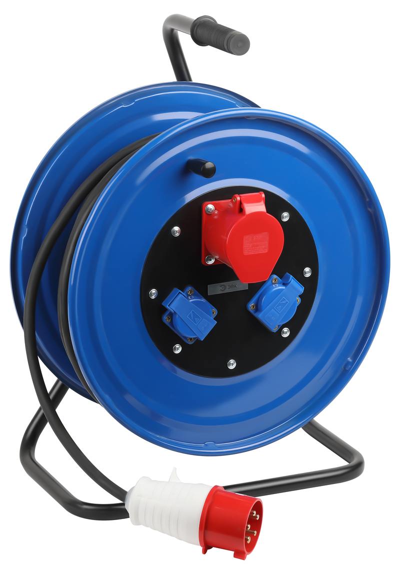 Характеристики Удлинитель силовой ЭРА IND380-RM-3e-5×2,5-20m-IP44 380В на катушке 3 розетки 1xCEE 5P 2xSCHUKO 20м КГ 5х2,5 32А IP44: