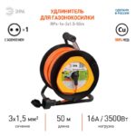 Характеристики Удлинитель силовой ЭРА RPx-1e-3×1.5-50m для газонокосилки c заземлением 50м 1 розетка ПВС 3х1.5мм2: