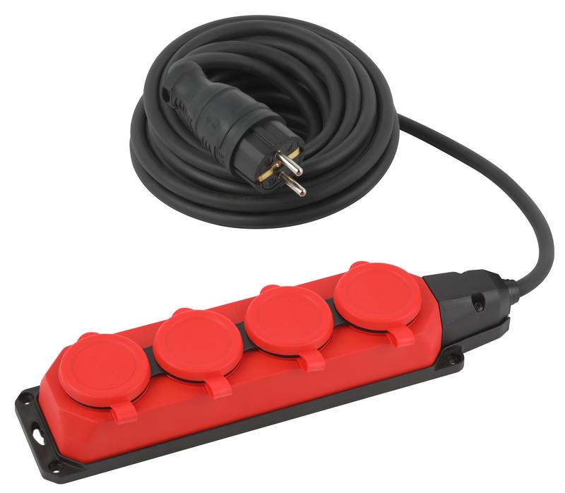 Удлинитель силовой ЭРА UK-4e-3×1,5-5m-IP44(KG) с заземлением, провод 5м, КГ 3×1,5мм2, 4 розетки, степень защиты IP44. Мощность 16А/3500Вт. Надежный, мощный удлинитель для любых работ, для подключения энергоемких электроприборов, удаленных на значительное расстояние от стационарной розетки. Корпус розеток выполнен из пыле- и влаго- защищенного материала (каучук). Характеристики провода КГ позволяют работать с удлинителем в широком диапазоне температур от -40° до +50°С, и использовать его в любое время года.