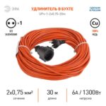 Характеристики Удлинитель силовой ЭРА UPx-1-2×0.75-30m в бухте без заземления 1 розетка 30м ПВС 2х0.75мм2: