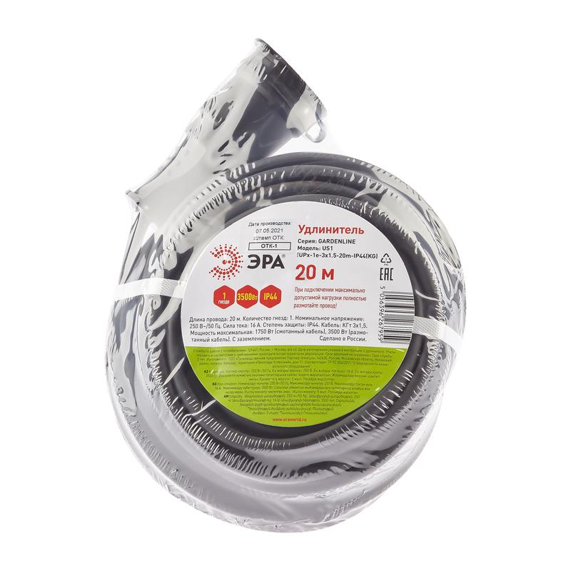 Характеристики Удлинитель силовой ЭРА UPx-1e-3×1,5-20m-IP44(KG) в бухте с заземлением 1 розетка 20 м КГ 3х1,5мм2: