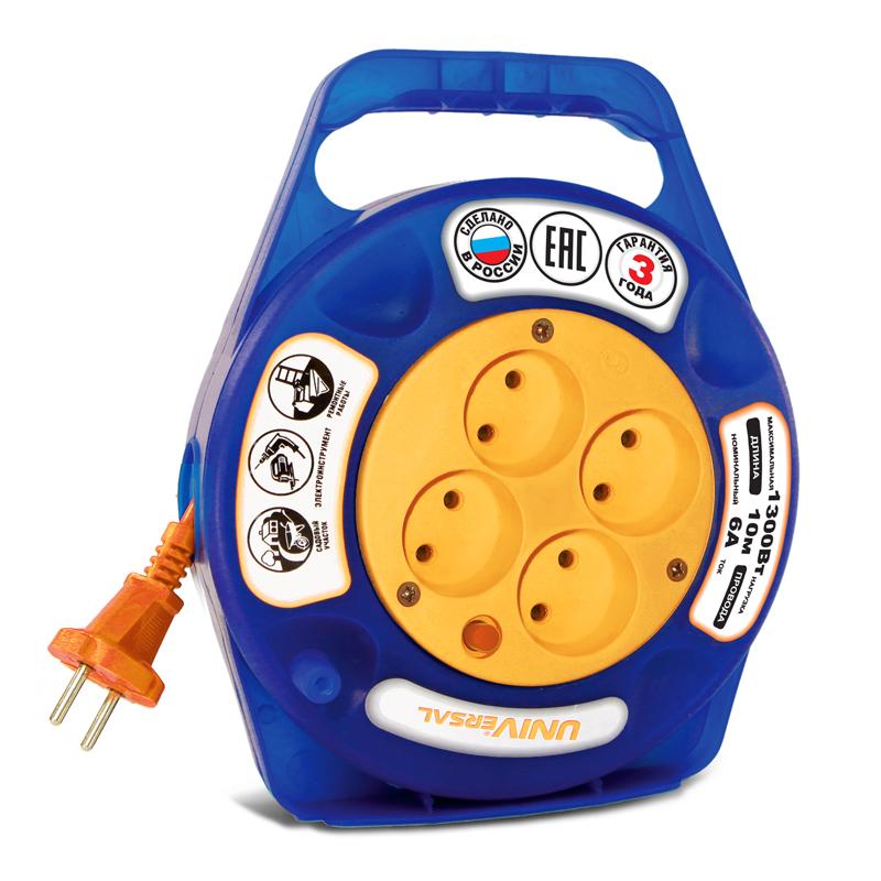 Характеристики Удлинитель в закрыт. корпусе 4х10м без заземл. 6А IP20 У6-015 ПВС 2х0.75 термозащита защ. шторки UNIVersal 9633900: