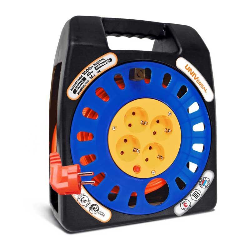 Характеристики Удлинитель в закрыт. корпусе 4х40м с заземл. 10А IP20 У16-012 ПВС 3х1 термозащита защ. шторки UNIVersal 1675: