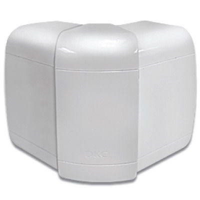 Угол внешний изменяемый (80-120°). Назначение: декоративное оформление мест стыковки кабельных коробов. Характеристики: материал накладки – АБС-пластик; материал базы и разделителей – ПП; встроенные перегородки для разделения внутреннего пространства на секции. Комплект поставки: внешняя декоративная накладка; внутренняя база; разделители (для монтажа на базу). Типоразмер 110х50. Цвет белый