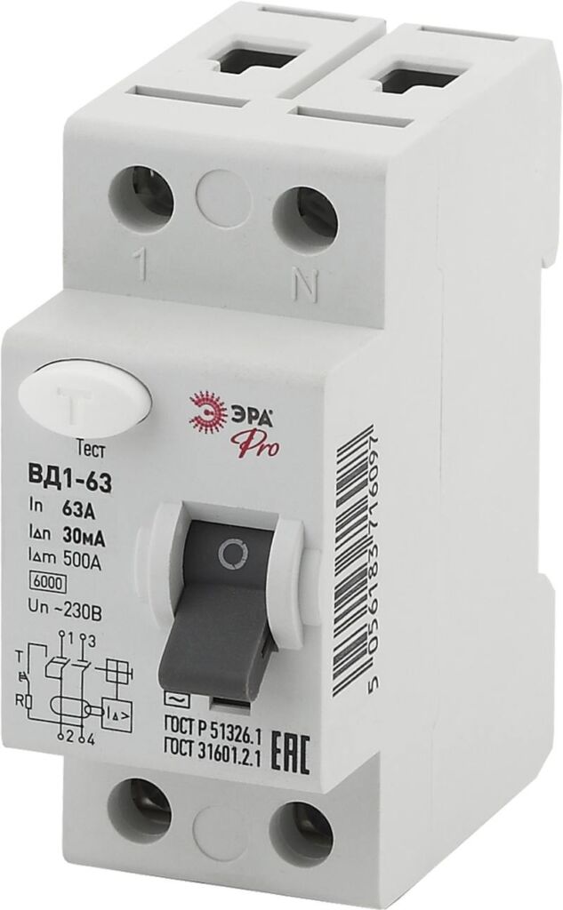 Характеристики УЗО ЭРА PRO NO-902-33 ВД1-63 2P 63А 30мА: