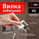 Характеристики Вилка ЭРА V5 плоская c заземлением 16A прямой ввод белая: