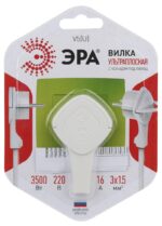 Вилка штепсельная ЭРА, с заземлением, максимальная мощность — 16 A/3500 В (кабель до 3×1.5мм2), поликарбонат