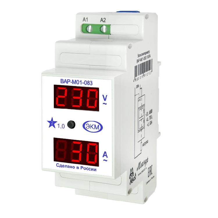 Характеристики Вольтамперметр цифровой ВАР-М01-083 AC20-450В УХЛ4 20 до 450В и тока от 0 до 63А 2 модуля Меандр A8302-19912127: