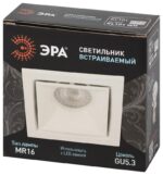 Характеристики Встраиваемый светильник алюминиевый ЭРА KL101 WH MR16 GU5.3 белый: