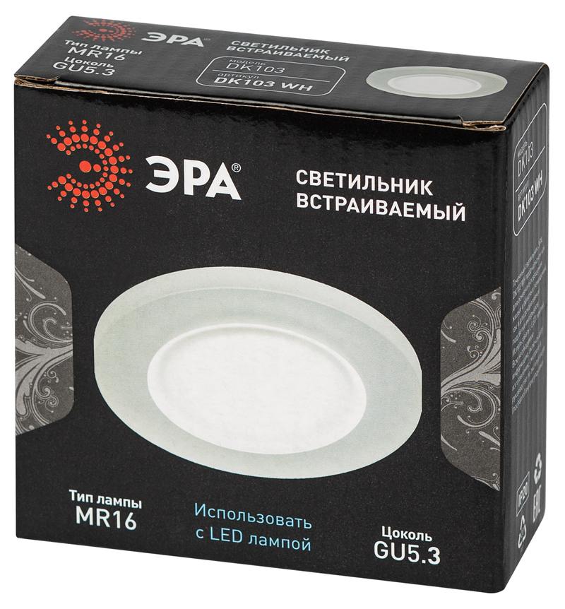 Характеристики Встраиваемый светильник декоративный ЭРА DK103 WH MR16 GU5.3 белый: