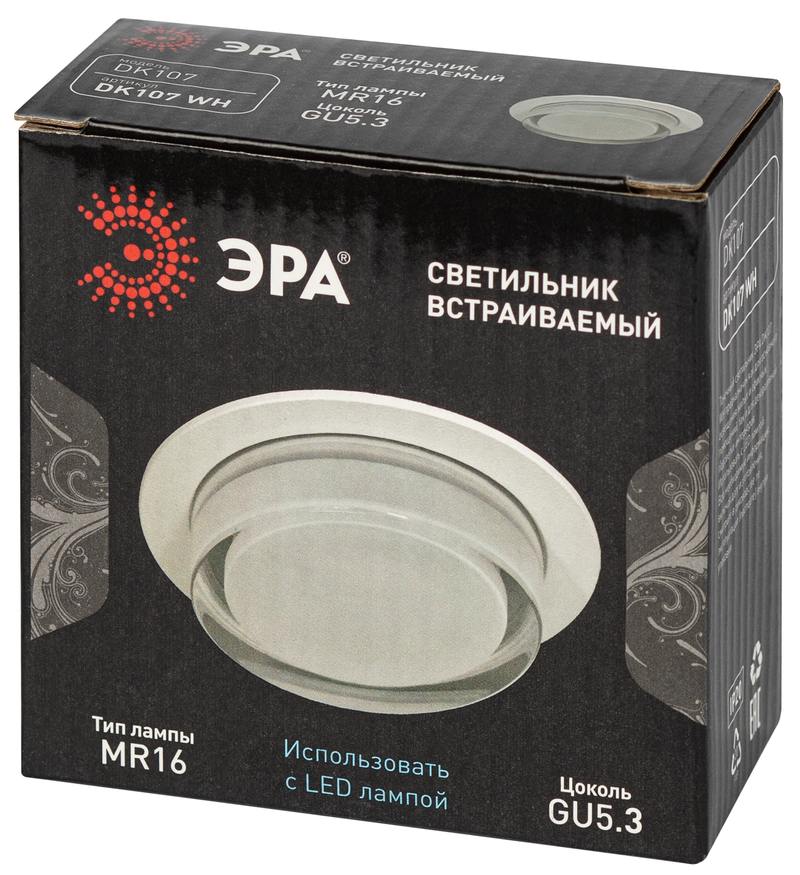 Характеристики Встраиваемый светильник декоративный ЭРА DK107 WH MR16 GU5.3 белый: