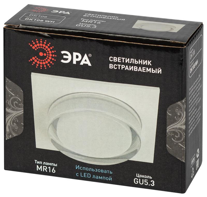 Характеристики Встраиваемый светильник декоративный ЭРА DK108 WH MR16 GU5.3 белый: