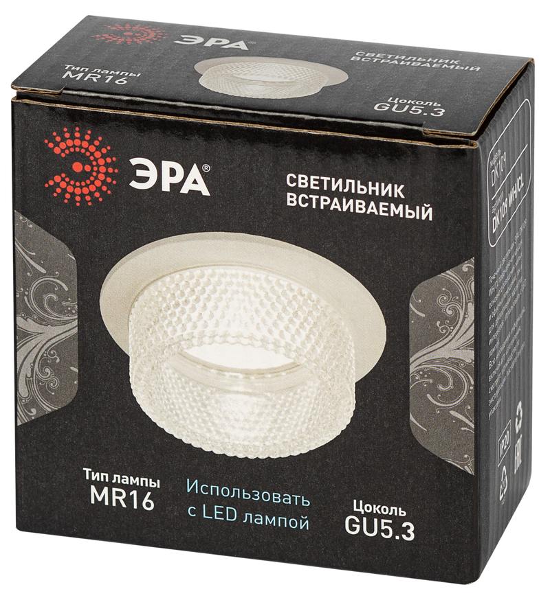 Характеристики Встраиваемый светильник декоративный ЭРА DK109 WH/CL MR16 GU5.3 белый прозрачный: