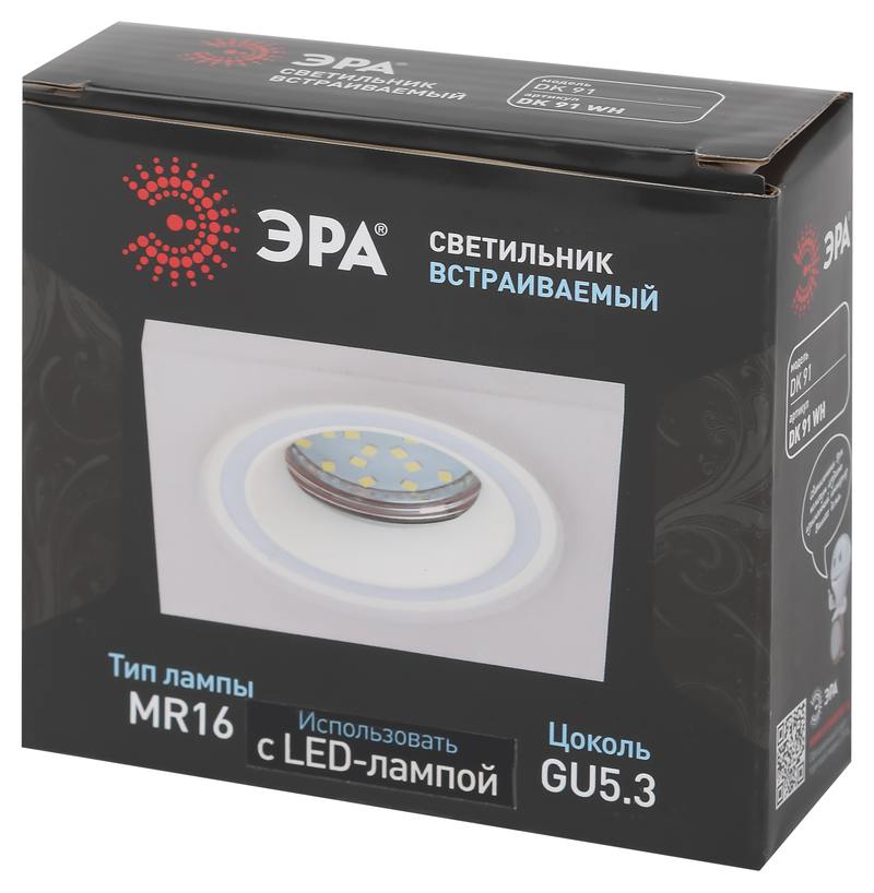 Характеристики Встраиваемый светильник декоративный ЭРА DK91 WH MR16/GU5.3 белый: