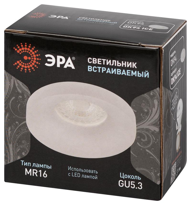Характеристики Встраиваемый светильник декоративный ЭРА DK94 ICE MR16 GU5.3 белый: