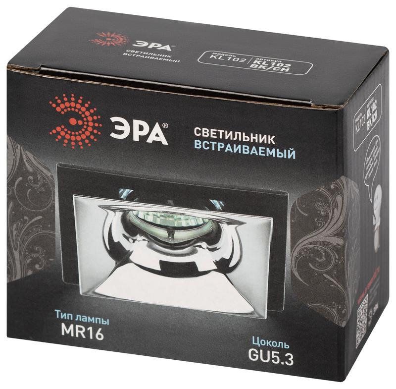 Характеристики Встраиваемый светильник декоративный ЭРА KL102 BK/CH MR16 GU5.3 черный хром: